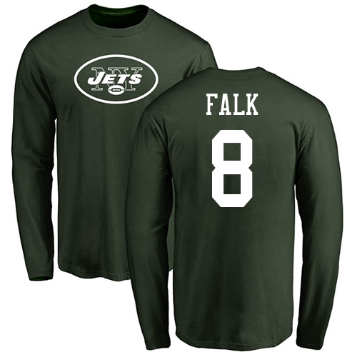 New York Jets Men Green Luke Falk Name and Number Logo NFL Football #8 Long Sleeve T Shirt