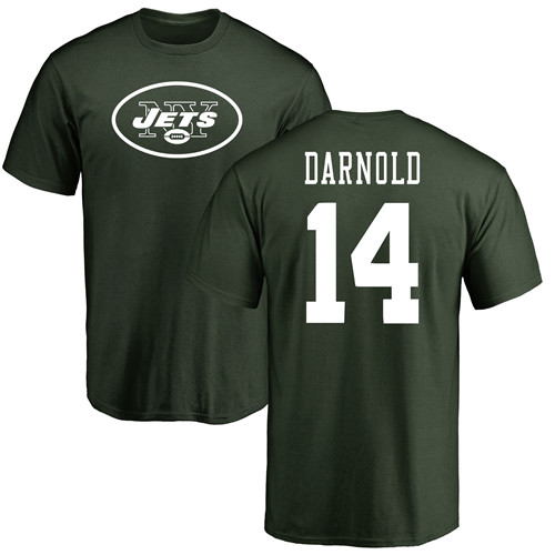 New York Jets Men Green Sam Darnold Name and Number Logo NFL Football #14 T Shirt