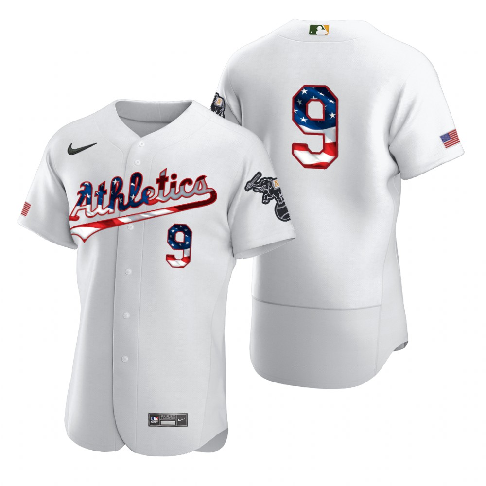 Oakland Athletics #9 Reggie Jackson Men Nike White Fluttering USA Flag Limited Edition Authentic MLB Jersey