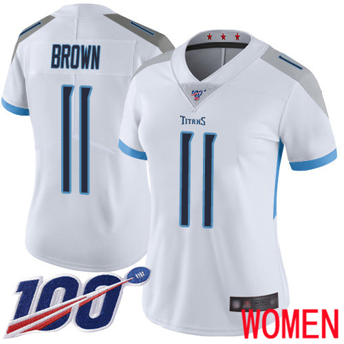 Tennessee Titans Limited White Women A.J. Brown Road Jersey NFL Football #11 100th Season Vapor Untouchable