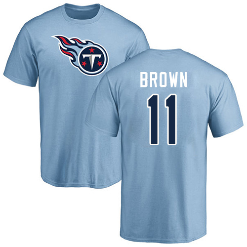 Tennessee Titans Men Light Blue A.J. Brown Name and Number Logo NFL Football #11 T Shirt