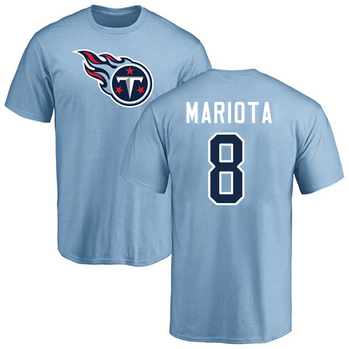 Tennessee Titans Men Light Blue Marcus Mariota Name and Number Logo NFL Football #8 T Shirt