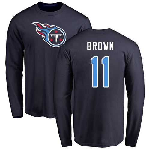 - Tennessee Titans Men Navy Blue A.J. Brown Name and Number Logo NFL Football #11 Long Sleeve T Shirt