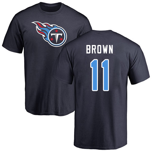 Tennessee Titans Men Navy Blue A.J. Brown Name and Number Logo NFL Football #11 T Shirt