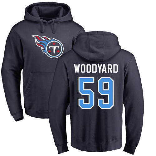 - Tennessee Titans Men Navy Blue Wesley Woodyard Name and Number Logo NFL Football #59 Pullover Hoodie Sweatshirts