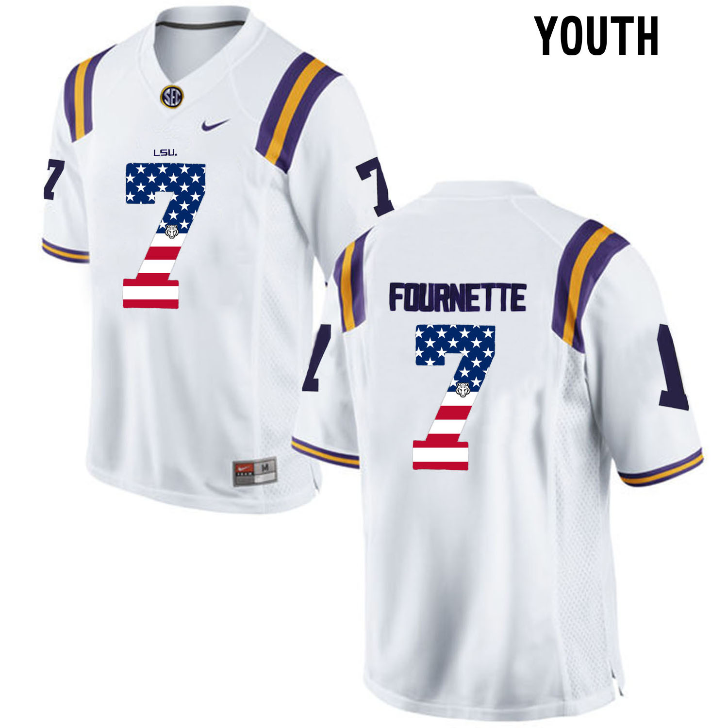 US Flag Fashion Youth LSU Tigers Leonard Fournette #7 College Football Limited Jersey White