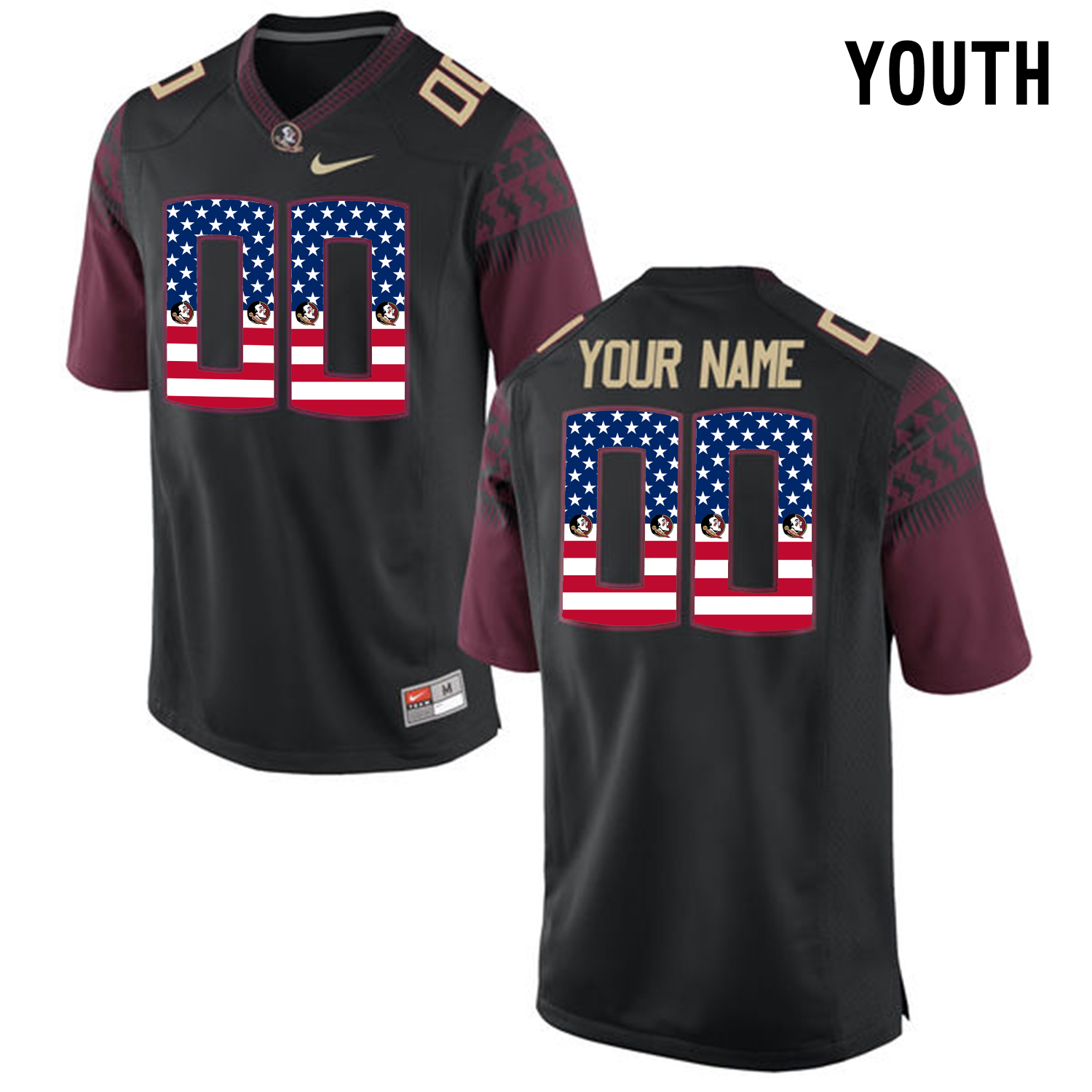 US Flag Fashion Youth Florida State Seminoles Customized College Football Limited Jersey Black