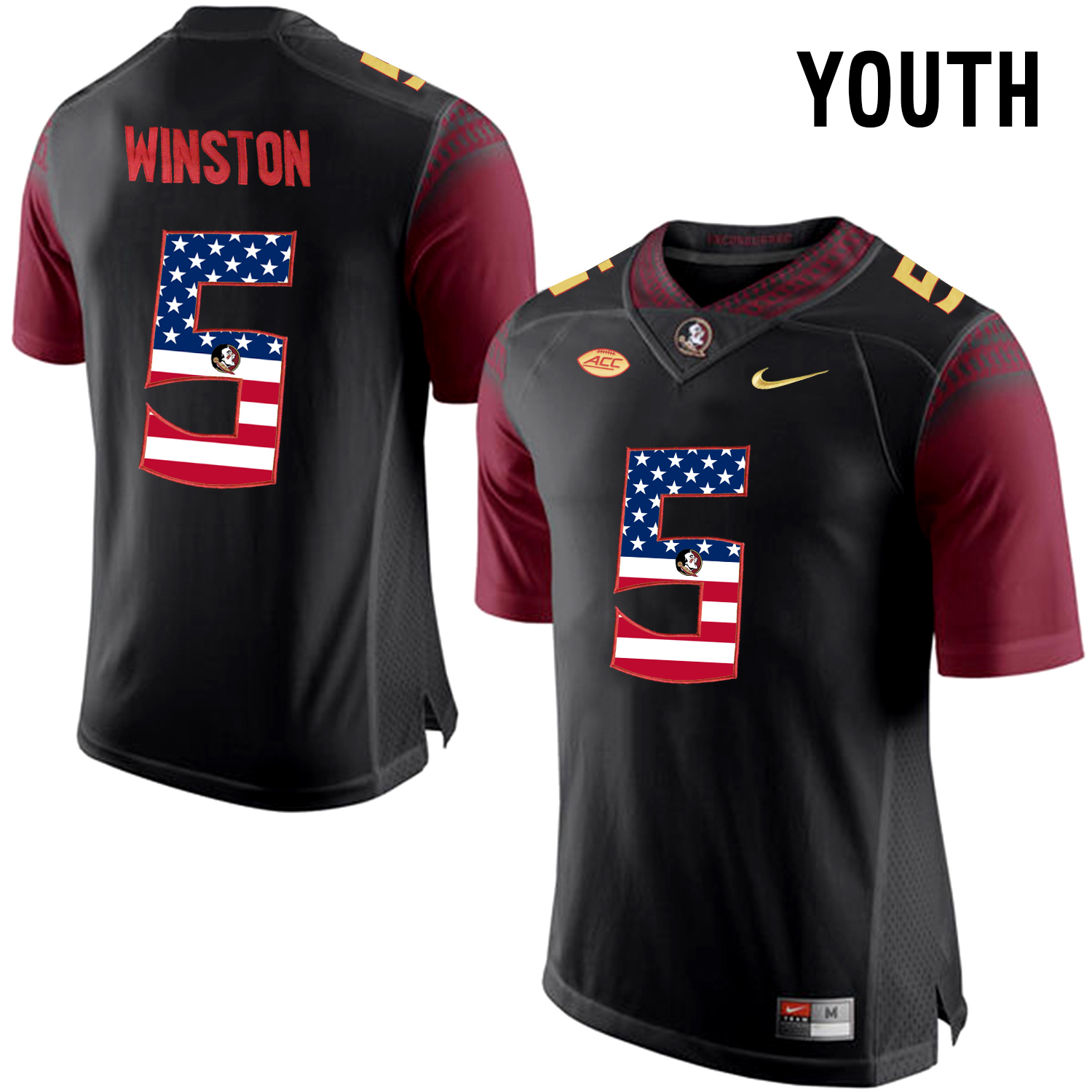US Flag Fashion Youth Florida State Seminoles Jameis Winston #5 College Football Limited Jersey Black