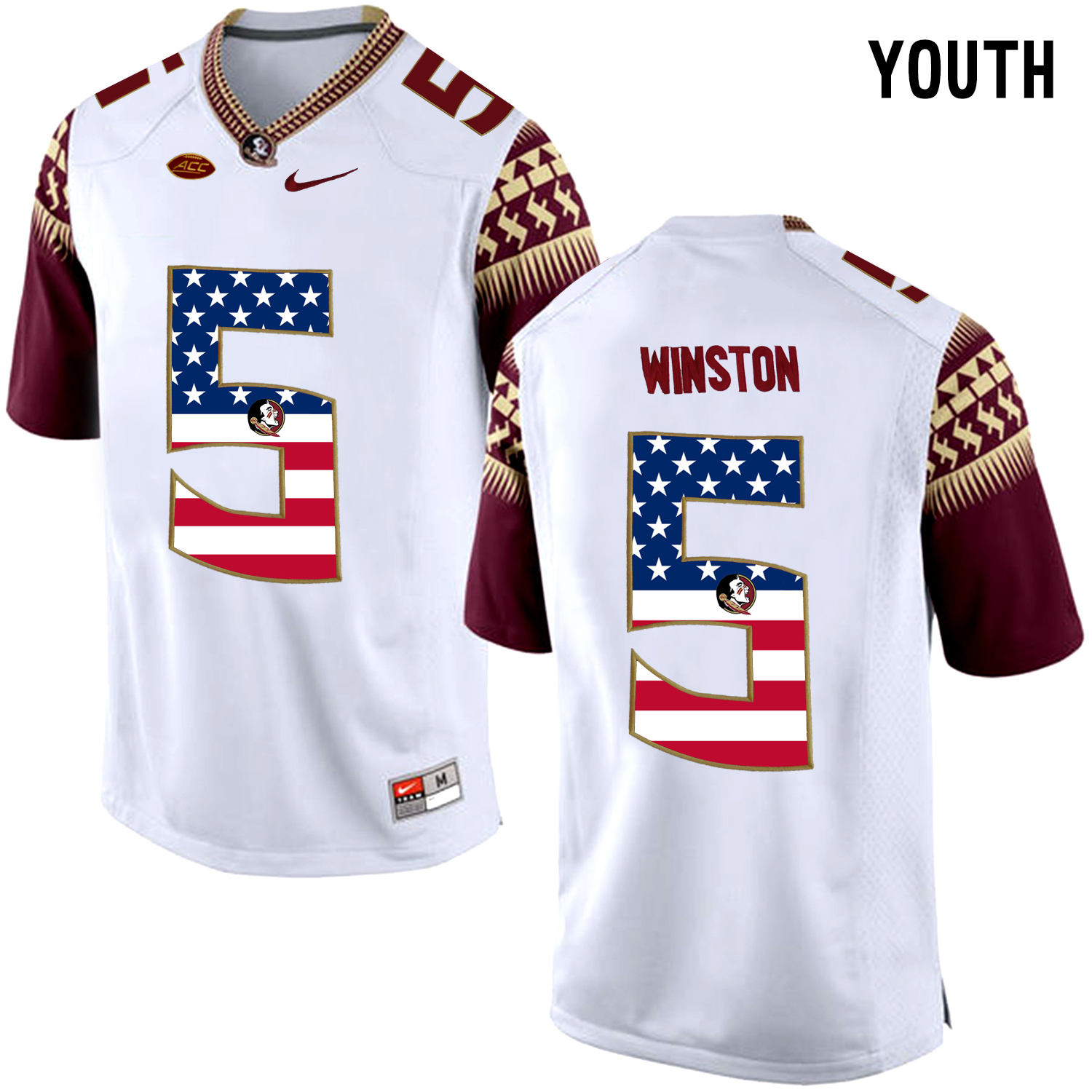 US Flag Fashion Youth Florida State Seminoles Jameis Winston #5 College Football Limited Jersey White