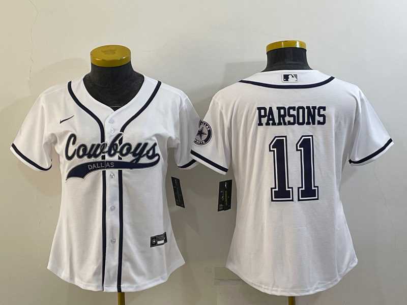 Women's Dallas Cowboys #11 Micah Parsons White With Patch Cool Base Stitched Baseball Jersey