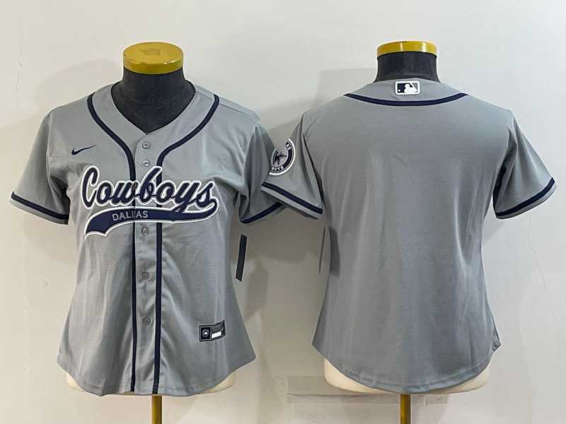 Women's Dallas Cowboys Blank Grey With Patch Cool Base Stitched Baseball Jersey
