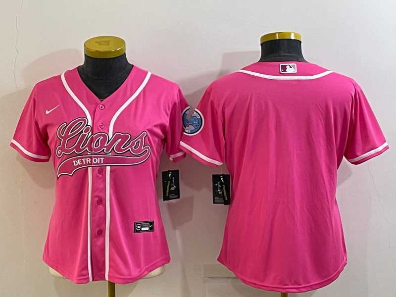 Women's Detroit Lions Blank Pink With Patch Cool Base Stitched Baseball Jersey
