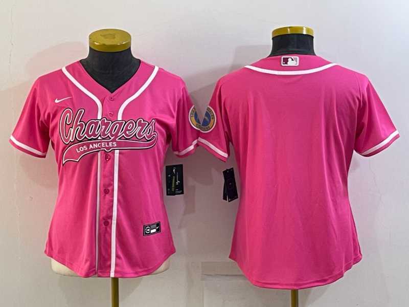 Women's Los Angeles Chargers Blank Pink With Patch Cool Base Stitched Baseball Jersey