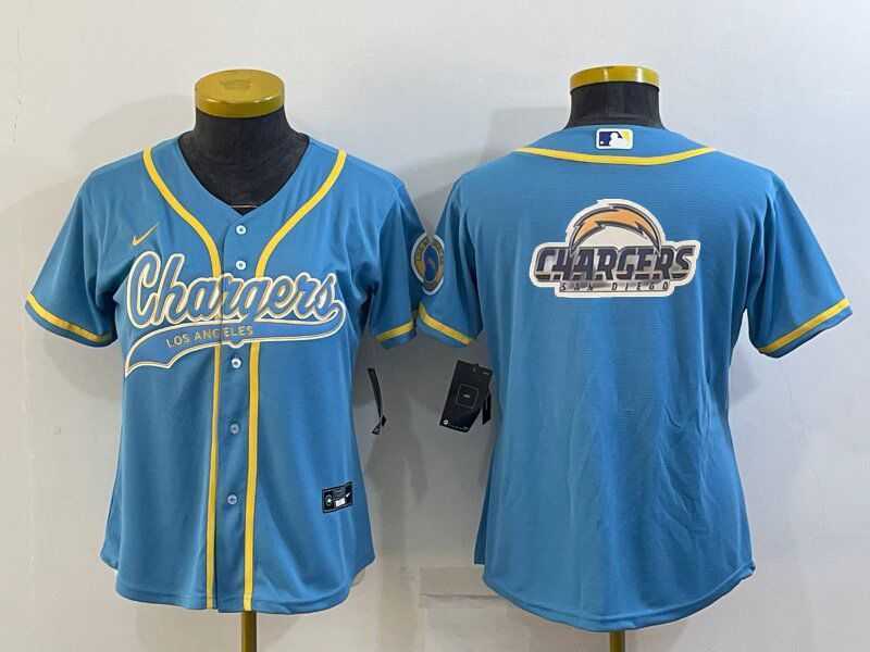 Women's Los Angeles Chargers Light Blue Team Big Logo With Patch Cool Base Stitched Baseball Jersey