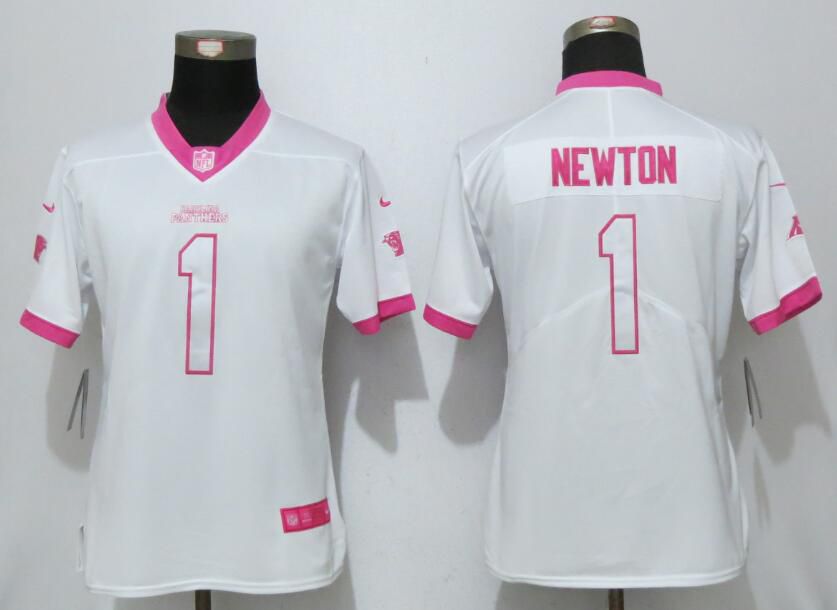 Women 2017 Carolina Panthers #1 Newton Matthews White Pink Stitched New Nike Elite Rush Fashion NFL Jersey