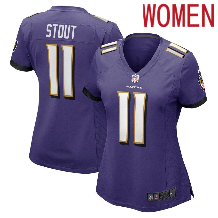 Women Baltimore Ravens #11 Jordan Stout Nike Purple Player Game NFL Jersey