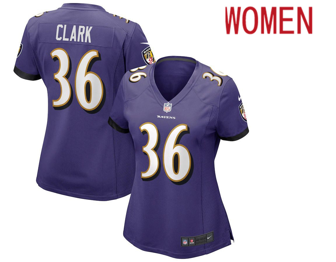 Women Baltimore Ravens #36 Chuck Clark Nike Purple Game NFL Jersey