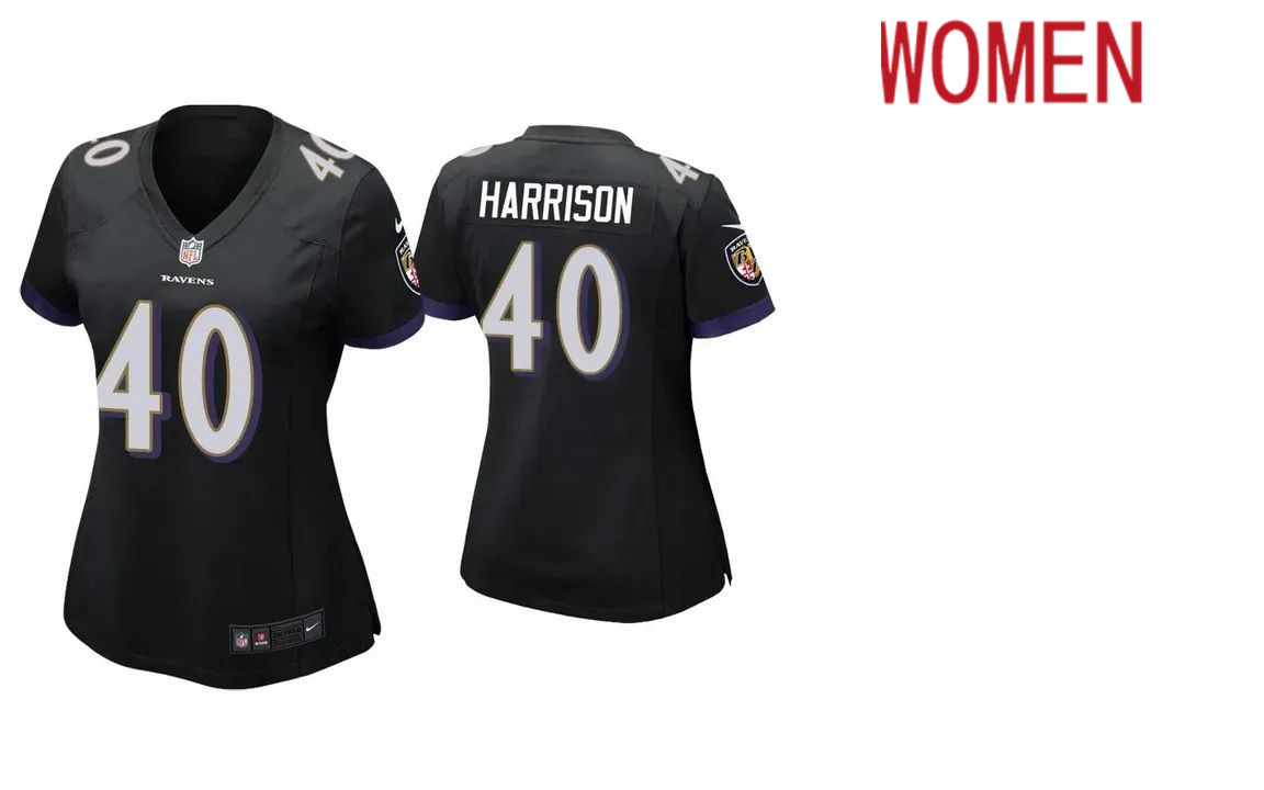 Women Baltimore Ravens #40 Malik Harrison Nike Black Game NFL Jersey