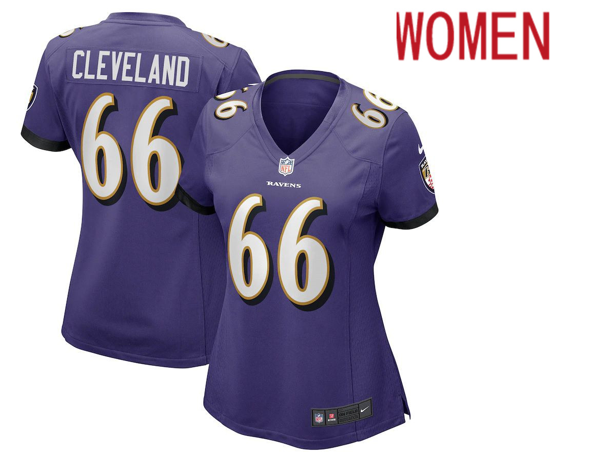Women Baltimore Ravens #66 Ben Cleveland Nike Purple Game NFL Jersey