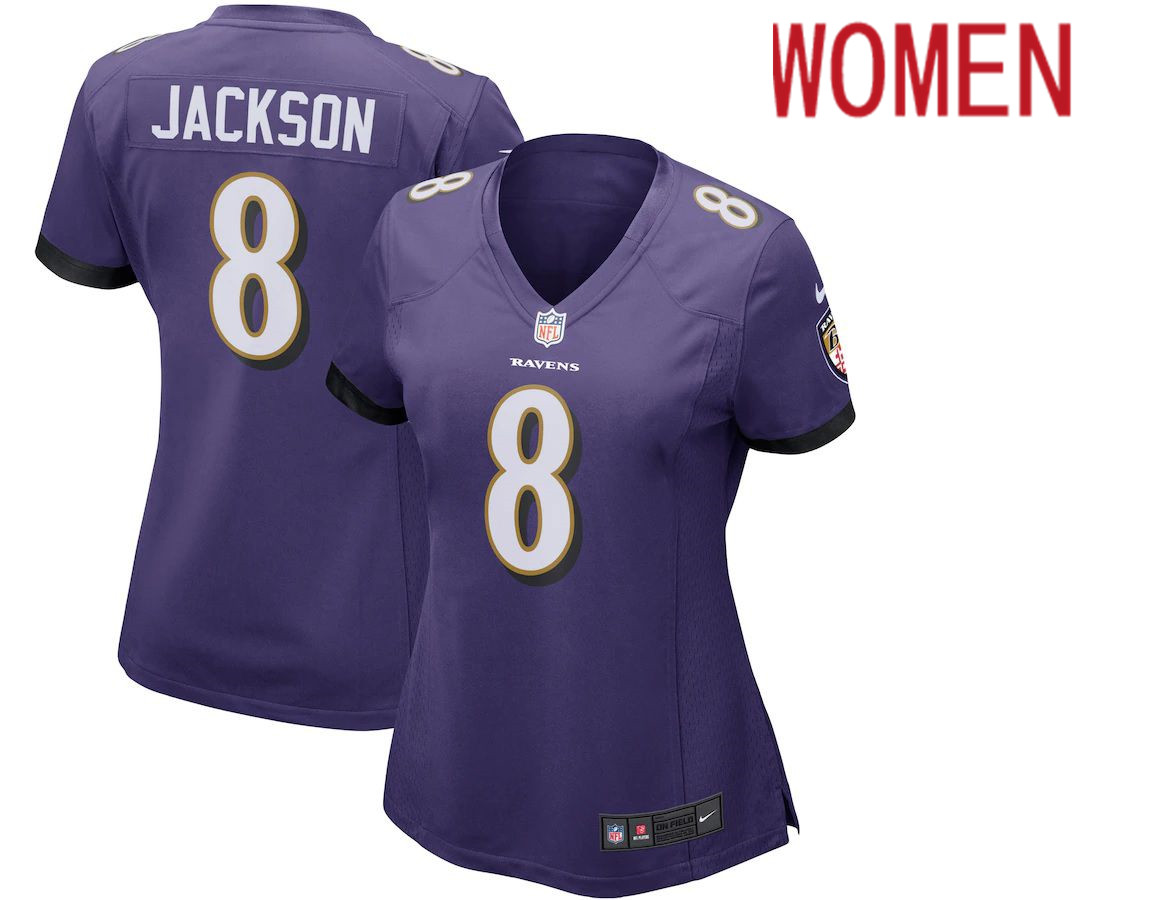 Women Baltimore Ravens #8 Lamar Jackson Nike Purple Game Player NFL Jersey