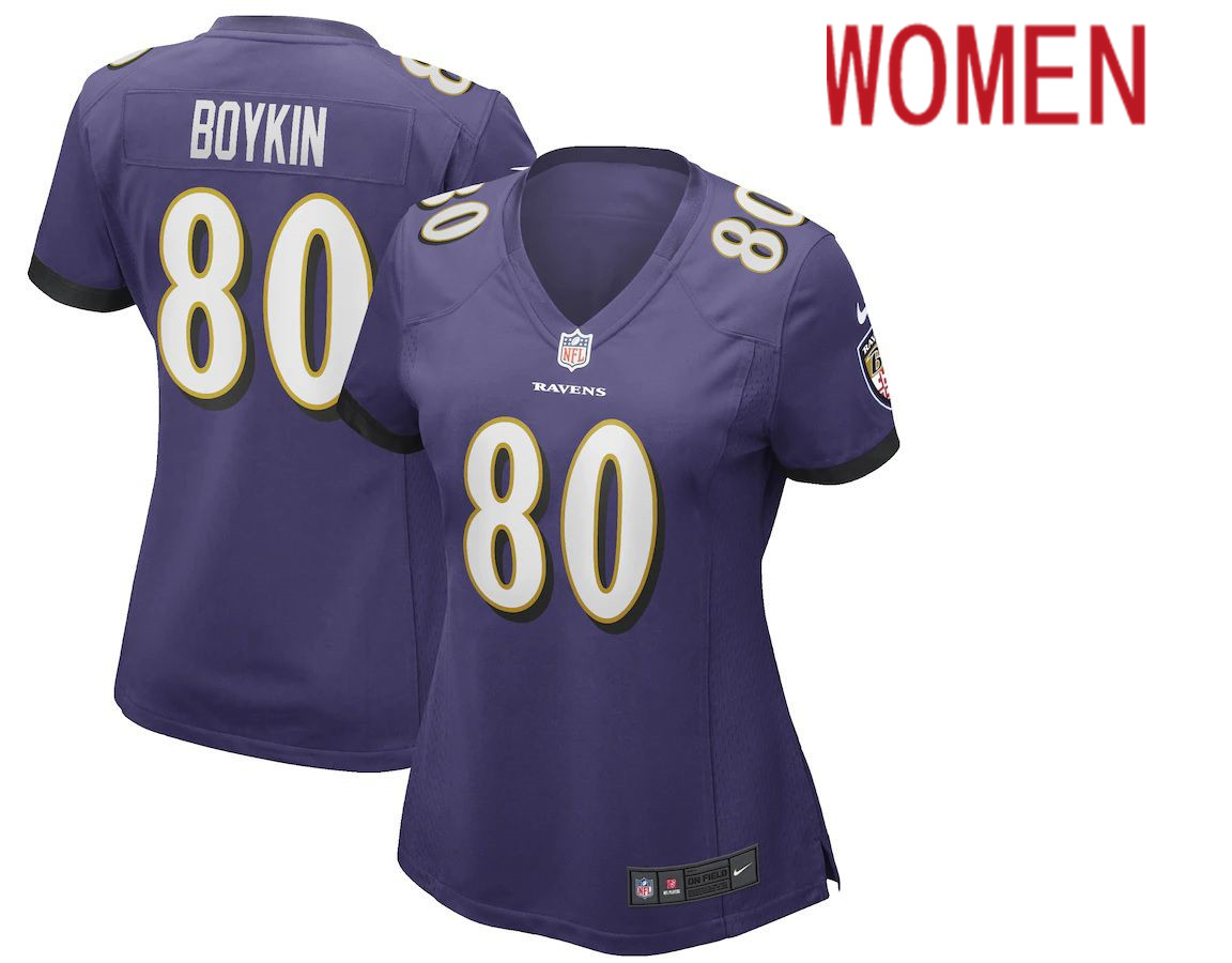 Women Baltimore Ravens #80 Miles Boykin Nike Purple Game NFL Jersey