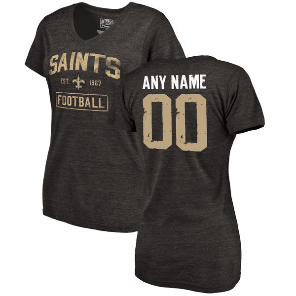 - Women Black New Orleans Saints Distressed Custom Name and Number Tri-Blend V-Neck NFL T-Shirt