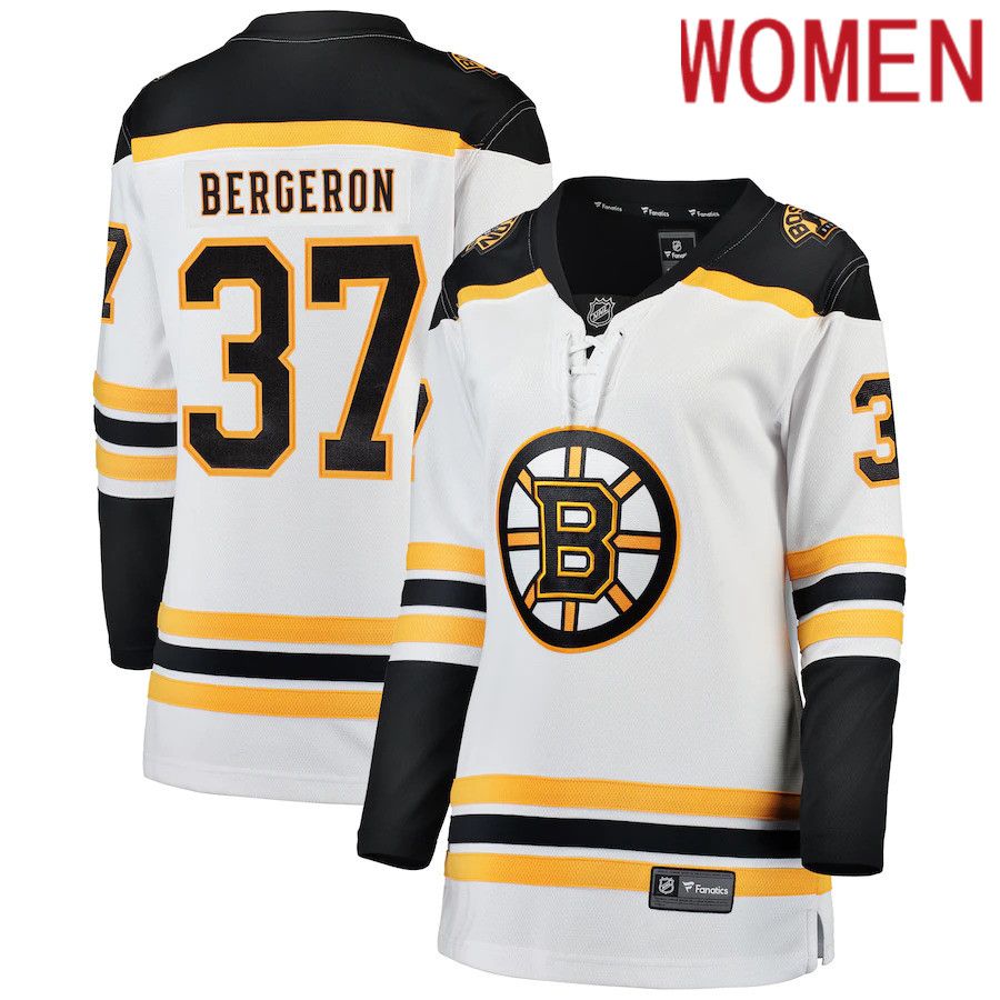 Women Boston Bruins #37 Patrice Bergeron Fanatics Branded White Breakaway Player NHL Jersey