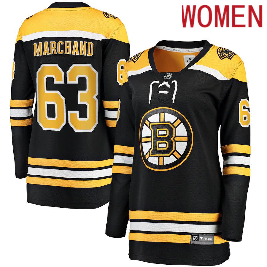 Women Boston Bruins #63 Brad Marchand Fanatics Branded Black Home Breakaway Player NHL Jersey