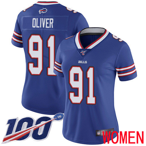 Women Buffalo Bills #91 Ed Oliver Royal Blue Team Color Vapor Untouchable Limited Player 100th Season NFL Jersey
