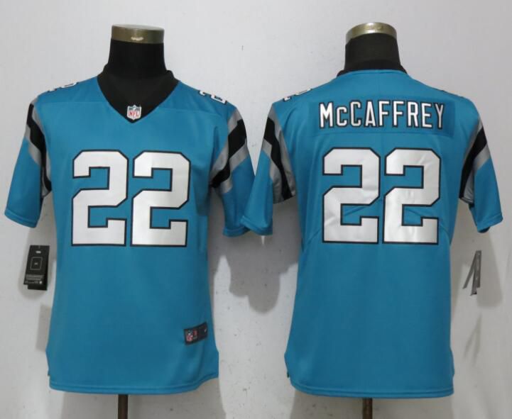 Women Carolina Panthers #22 McCaffrey Blue Vapor Untouchable Player Nike Limited NFL Jerseys