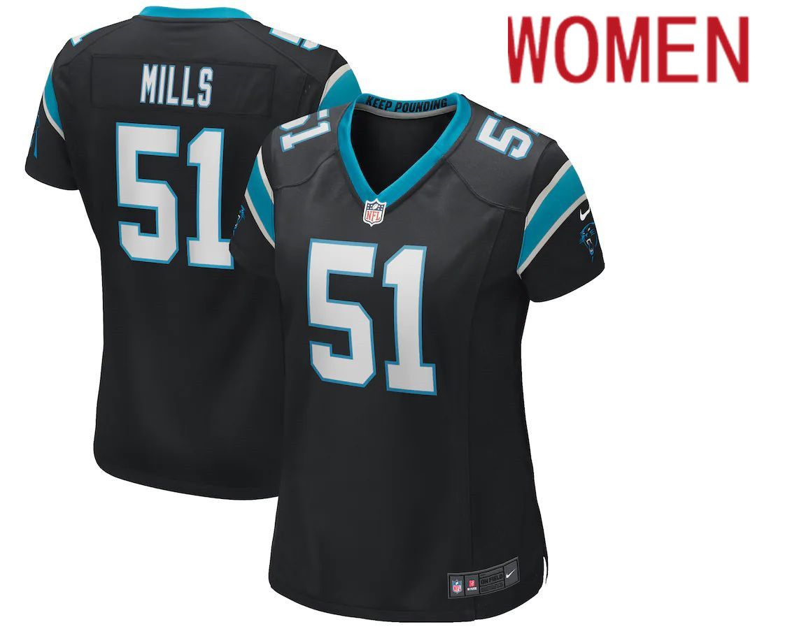 Women Carolina Panthers #51 Sam Mills Nike Black Game Retired Player NFL Jersey