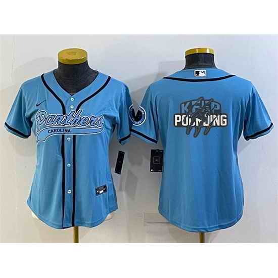 Women Carolina Panthers Blue Team Big Logo With Patch Cool Base Stitched Baseball Jersey