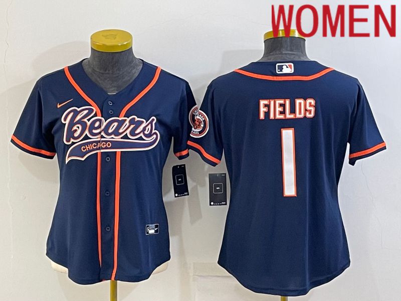 Women Chicago Bears #1 Fields Blue 2022 Nike Co branded NFL Jerseys