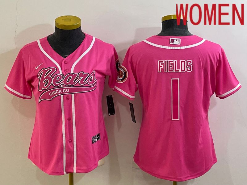 Women Chicago Bears #1 Fields Pink 2022 Nike Co branded NFL Jerseys