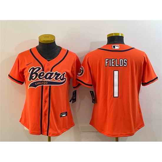 Women Chicago Bears #1 Justin Fields Orange With Patch Cool Base Stitched Baseball Jersey