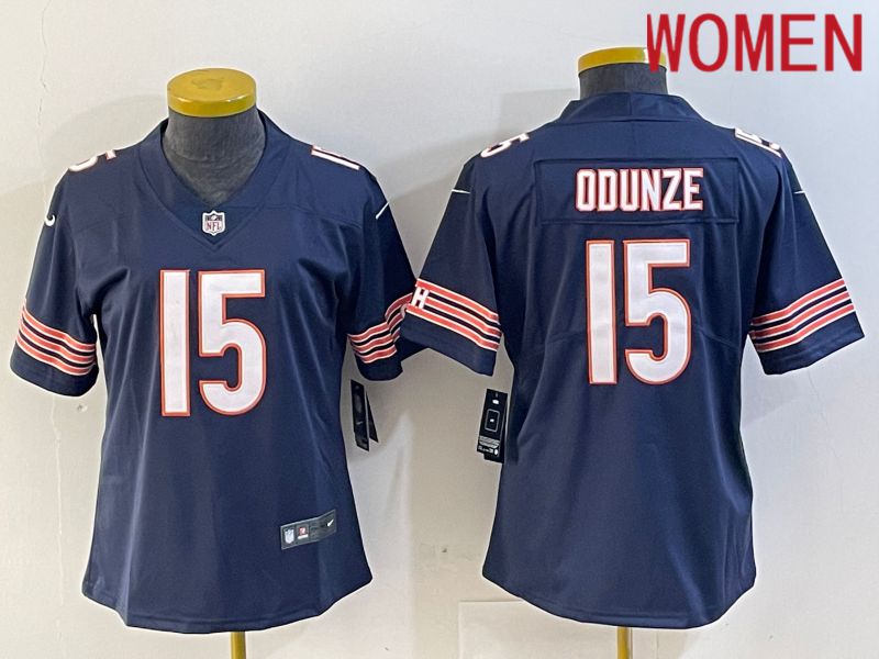 Women Chicago Bears #15 Odunze Blue Second generation 2024 Nike Limited NFL Jersey style 1