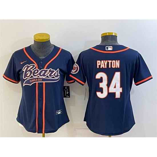 Women Chicago Bears #34 Walter Payton Navy With Patch Cool Base Stitched Baseball Jersey