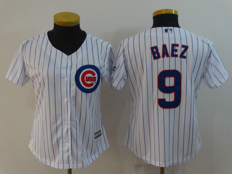 Women Chicago Cubs #9 Baez White MLB Jerseys