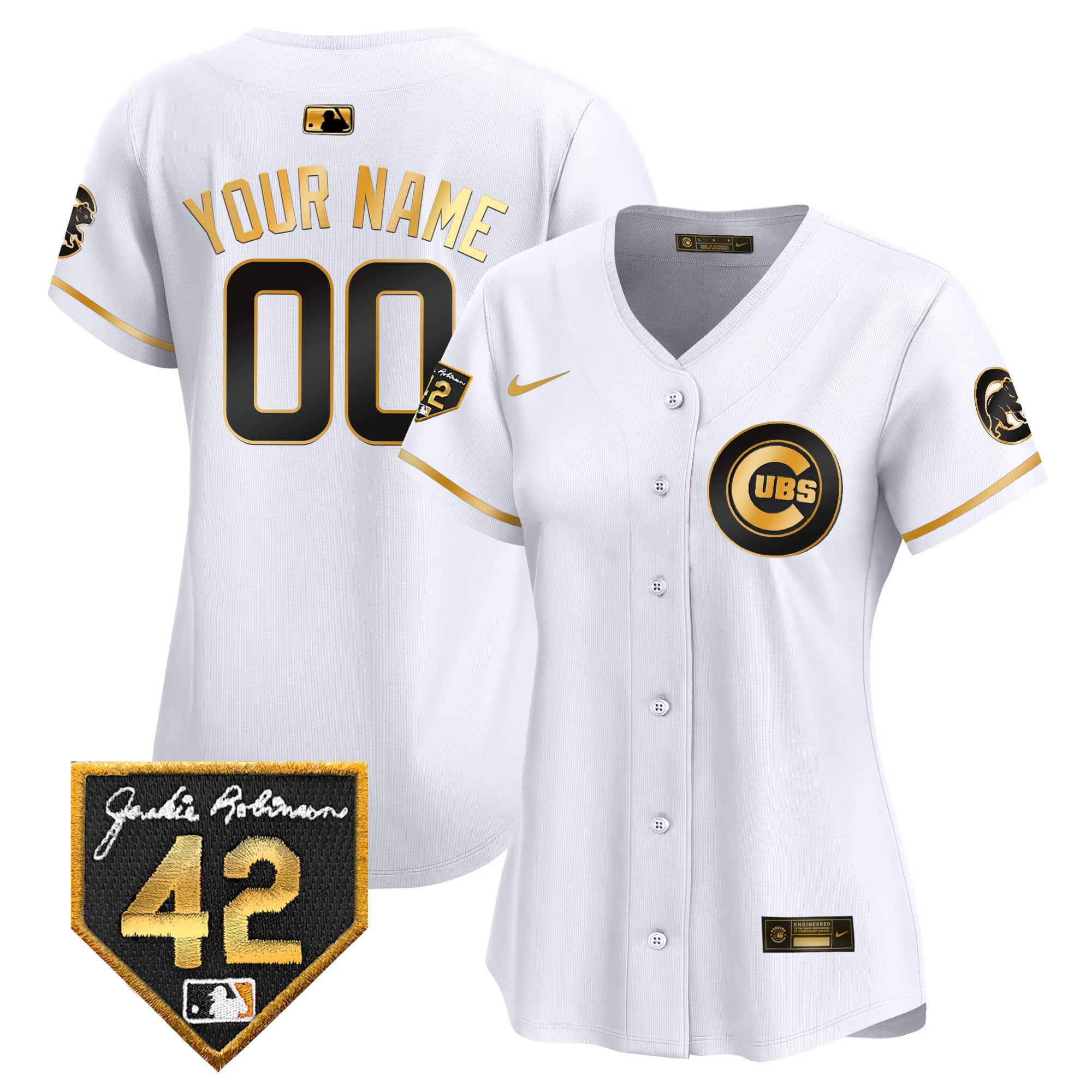 Women Chicago Cubs White Nike 2024 Jackie Robinson Patch Vapor Premier Limited Custom MLB Jersey