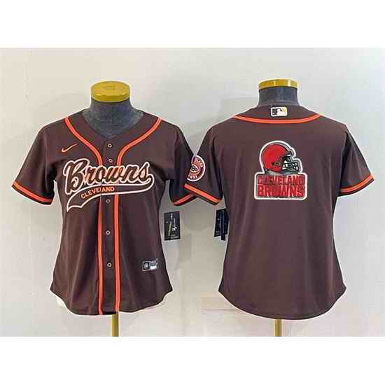 Women Cleveland Browns Brown Team Big Logo With Patch Cool Base Stitched Baseball Jersey