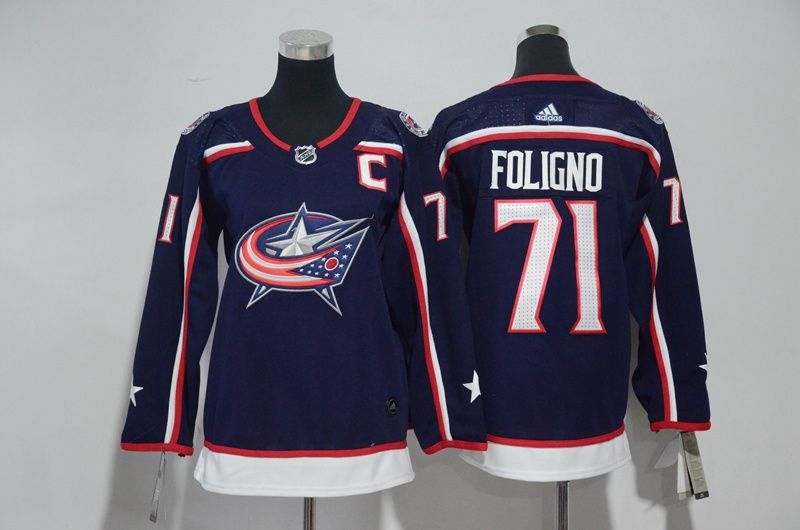 Women Columbus Blue Jackets #71 Foligno Blue Hockey Stitched Adidas NHL Jerseys