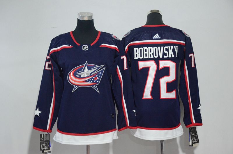 Women Columbus Blue Jackets #72 Bobrovsky Blue Hockey Stitched Adidas NHL Jerseys