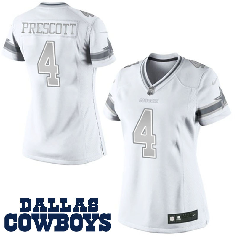 women dallas cowboys #4 dak prescott white platinum limited jersey
