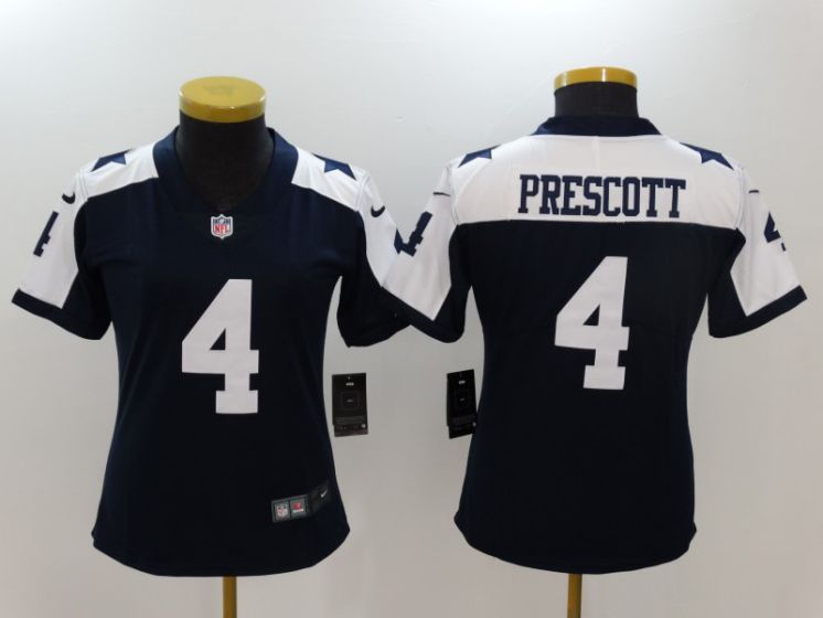 Women Dallas Cowboys #4 Prescott Blue Thanksgiving Nike Vapor Untouchable Limited NFL Jerseys