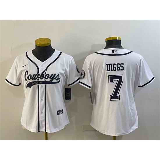 Women Dallas Cowboys #7 Trevon Diggs White With Patch Cool Base Stitched Baseball Jersey