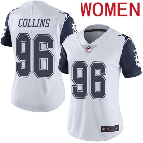 Women Dallas Cowboys #96 Maliek Collins Nike White Rush Limited NFL Jersey
