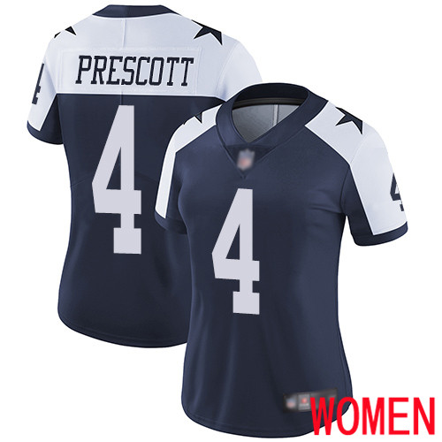 Women Dallas Cowboys Limited Navy Blue Dak Prescott Alternate #4 Vapor Untouchable Throwback NFL Jersey
