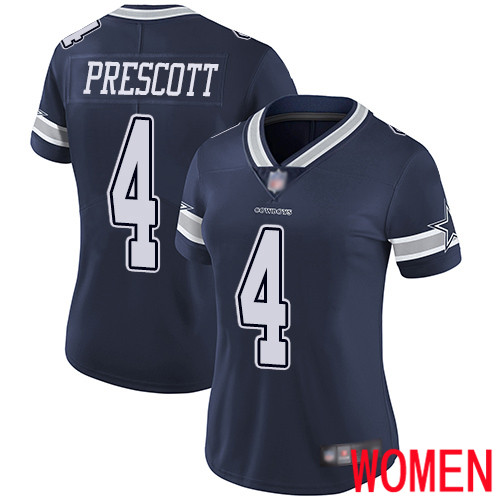 Women Dallas Cowboys Limited Navy Blue Dak Prescott Home #4 Vapor Untouchable NFL Jersey