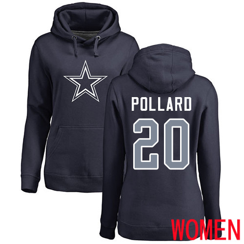 - Women Dallas Cowboys Navy Blue Tony Pollard Name and Number Logo #20 Pullover NFL Hoodie Sweatshirts