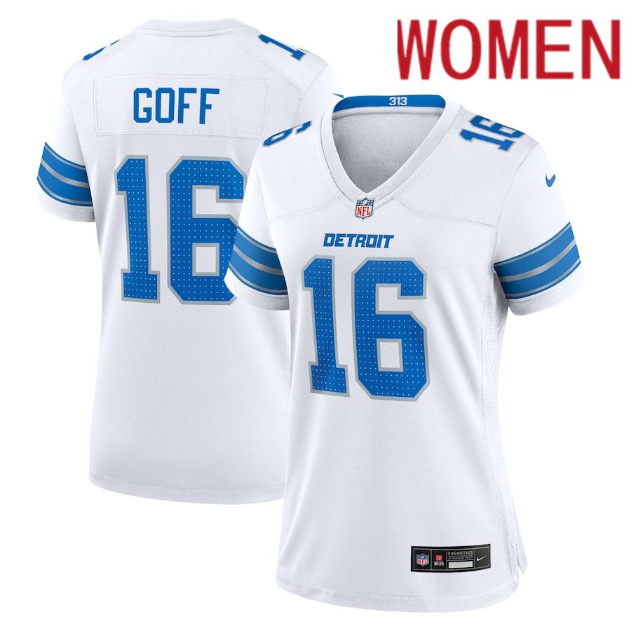 Women Detroit Lions #16 Jared Goff Nike White Game NFL Jersey